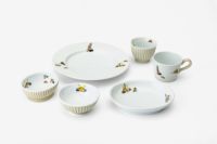 子供の誕生から100日目に行われる「お喰い初め」。深川製磁では、お子様の健やかな成長を願って制作いたしました。 将来この子が食べ物に困りませんように、丈夫に育ちますようにと 願いを込めて食べ物を口につけさせます。 「お喰い初め」は 子供の成長過程の一つの儀式をつかさどる人生最初の食器です。 元気な男の子になるようにと黄色をベースに由緒ある戦国武将の兜模様をあしらっております。形姿は温かみのある柔らかな手触りと強度も兼ね備えたもの。「陶磁器は欠けるもの」だからこそ「大事に使ってね」と道具の大切さを学んでほしいと願っております。