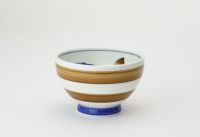 可愛らしいどんぐり模様は、秋の実りを思わせるやさしい雰囲気をまとい、食卓をあたたかく彩ります。器の外側には、茶色の刷毛で大胆に円を描き、手仕事ならではの表情を添えました。