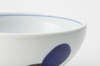 古来より日本人に好まれてきた丸紋を、染付の濃み(だみ)と赤絵の濃みとのコンビネーションでデザインした中丼です。職人によりひとつひとつ描かれた温かみのある丸紋は、長くお使い頂けるデザインとなっています。
