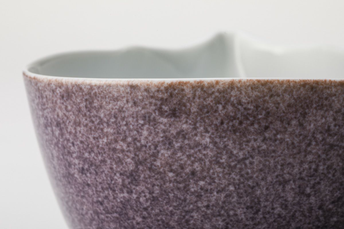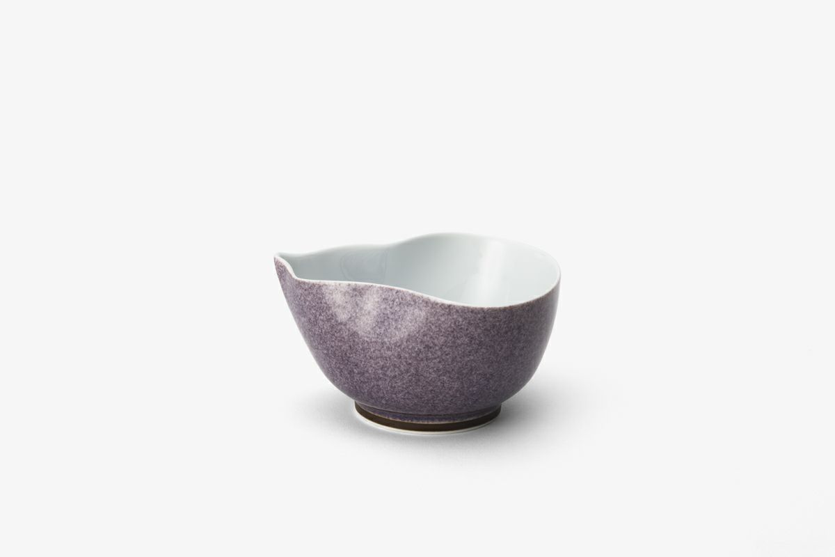 グレイッシュなパープルを伝統的な吹墨手法で、ひょうたんの形をモダンに浮き上がらせた作品。熟練の職人により見込みに丁寧に染付けられた桔梗とのバランスに趣味性が色濃く表わされています。オブジェとしての形状の面白さ、インテリアとしても映えるデザイン(小物入れや花器に)、また和洋問わずお料理が映える上質なうつわです。 ( 和:煮物用、揚げだし豆腐、子丼用など、 洋:リゾット、ロールキャベツなど、 甘:アイスクリーム、あんみつ、ところてんなど)