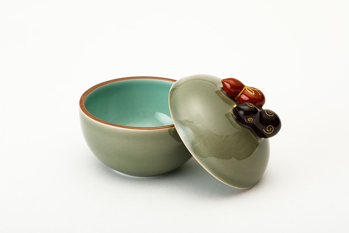 愛らしいひょうたんのつまみが付いた茶灰釉の蓋物です。 食卓にアクセントを与えてくれる愛らしい蓋物はお漬物や佃煮など普段使いのマストアイテム。場所を取らずコンパクトなサイズはそのまま冷蔵庫に保管でき、出し入れも簡単です。 また、小物入れとしてもお使いいただけます。