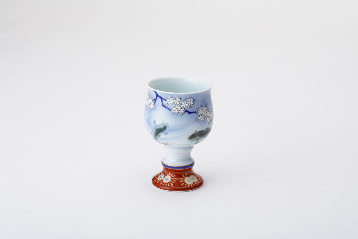 染錦桜鯉 花型ワインカップ:径 7㎝ , 高 10.5㎝ , 容量 180ml
