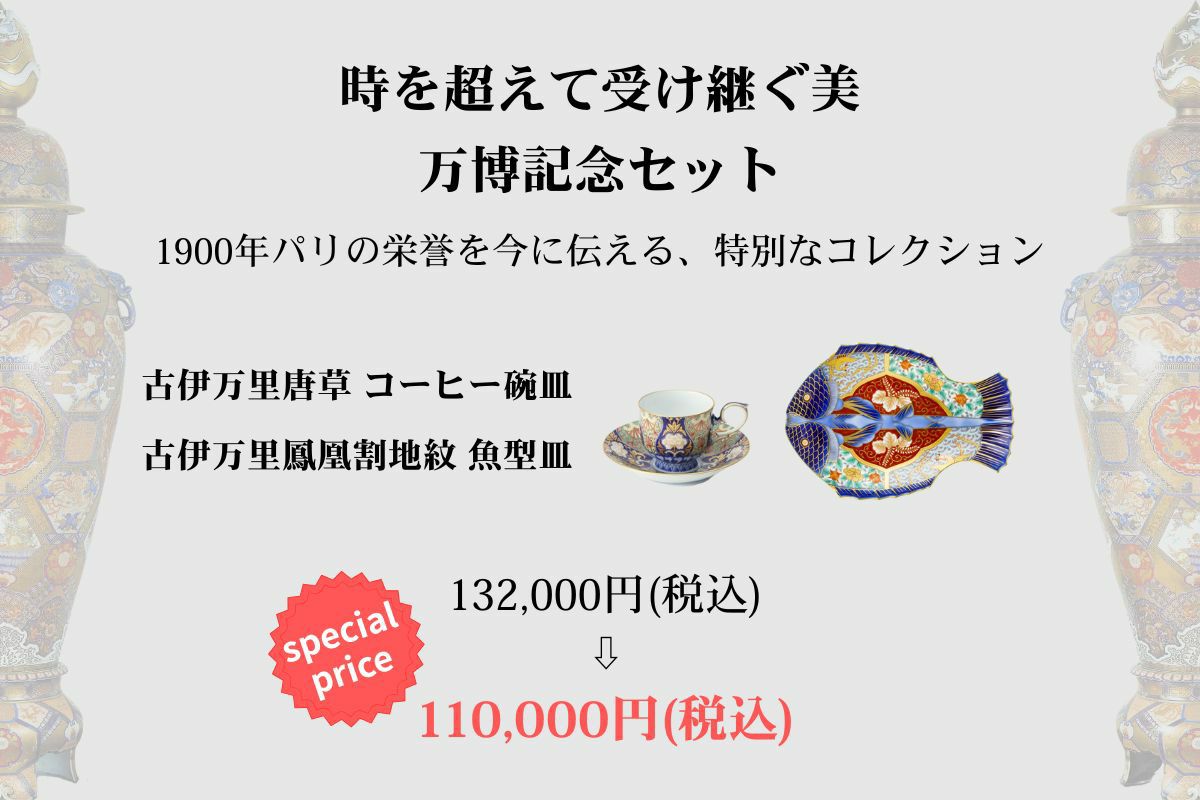 深川製磁は、1900年のパリ万国博覧会において金賞を受賞した大壺を有しており、今回の万博出展を記念した特別企画として、当時海外へ輸出されていた作品の復刻版を、特別セットでご提供いたします。