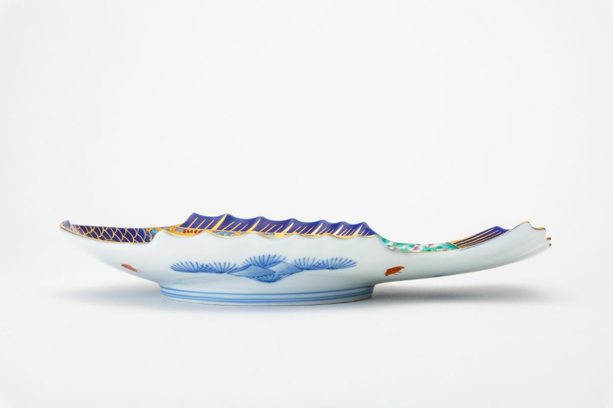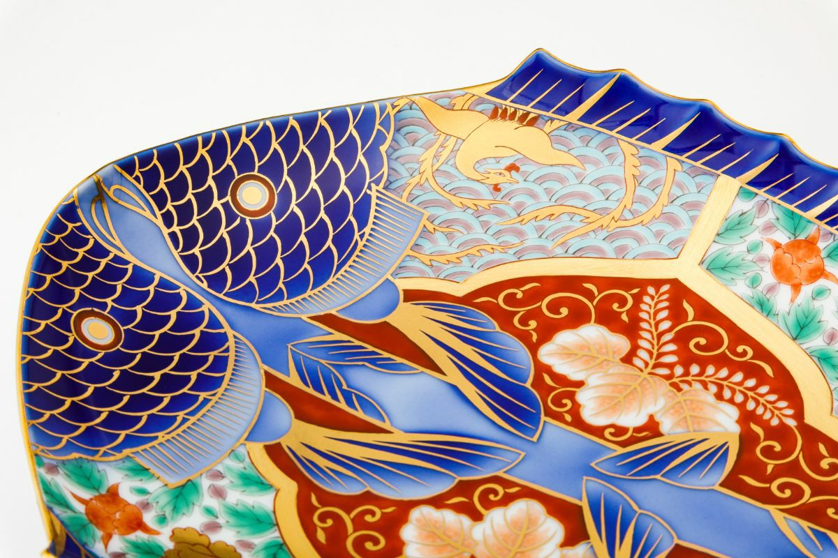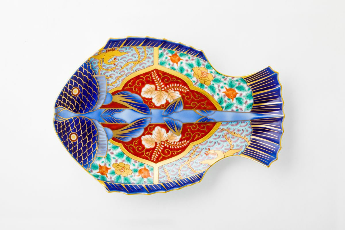 魚型皿は17~18世紀に有田で焼かれ、伊万里の港から長崎を経由してヨーロッパにまで輸出され人気を博した「OLD IMARI 古伊万里」と呼ばれた陶磁器スタイルを現代にリメイクした作品です。