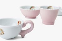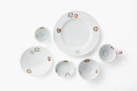 子供の誕生から100日目に行われる「お喰い初め」。深川製磁では お子様の健やかな成長を願って制作いたしました。 将来この子が食べ物に困りませんように、丈夫に育ちますようにと願いを込めて食べ物を口につけさせます。「お喰い初め」は子供の成長過程の一つの儀式をつかさどる人生最初の食器です。 描かれている意匠は、明治時代から用いられている深川製磁の「丸紋」で、 女の子には愛らしいピンクをベースとし、季節を閉じ込めた花丸紋をあしらいました。形姿は温かみのある柔らかな手触りと強度も兼ね備えたもの。「陶磁器は欠けるもの」だからこそ「大事に使ってね」と道具の大切さを学んでほしいと願っております。