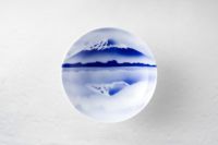 勅題「明」に因み、「明鏡止水」のごとく澄みきった心で穏やかに過ごせますようにとの願いを込め、湖面に映る富士を描きました。