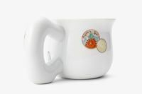 透明感のあるクリスタルガラスのような「盛り絵具」で描いた虎絵は、指先でなぞると虎の生命力をも感じられます。初代深川忠次が好んで描いた丸紋には四君子と麻の葉文様を描き、黄とうす青の丸紋とともに空間に配され、深川様式の吉祥文様としております。古くから故事にも登場する虎を愛でながら、至福のひとときをお楽しみください。