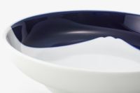 ルリ富士は深川製磁ならではの上品で澄んだ青が特徴的で、焼成によってガラスのようなつやを放ち、光の加減で表情が変化します。見る角度によって微妙な陰影が生まれ、静謐な美を感じさせます。また、中央に浮かび上がるのは、堂々とした「富士山」のシルエット。日本人にとって特別な存在である富士を、抽象的かつ洗練された表現で描いています。海外の方への贈り物にもおすすめです。