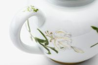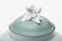 白百合の花言葉は「純潔、無垢」。何よりもこだわったのは、上品な「WHITE」です。上質な陶石を1350度の高温度で焼成する事により生まれる透けるような真白な磁器肌。幸せの大輪を咲かせたような優雅な白百合の花びらは、伝統的な技法によって特別に調合したいくつもの白い上絵具で描かれ、モダンなニュアンスをもつ柔らかな白のハーモニーが魅力です。愛らしいフリルのかたちにのせて優しい風に揺らぐ清楚な白百合の姿はまるでレリーフ。使う度に幸せに包まれるコレクションです。