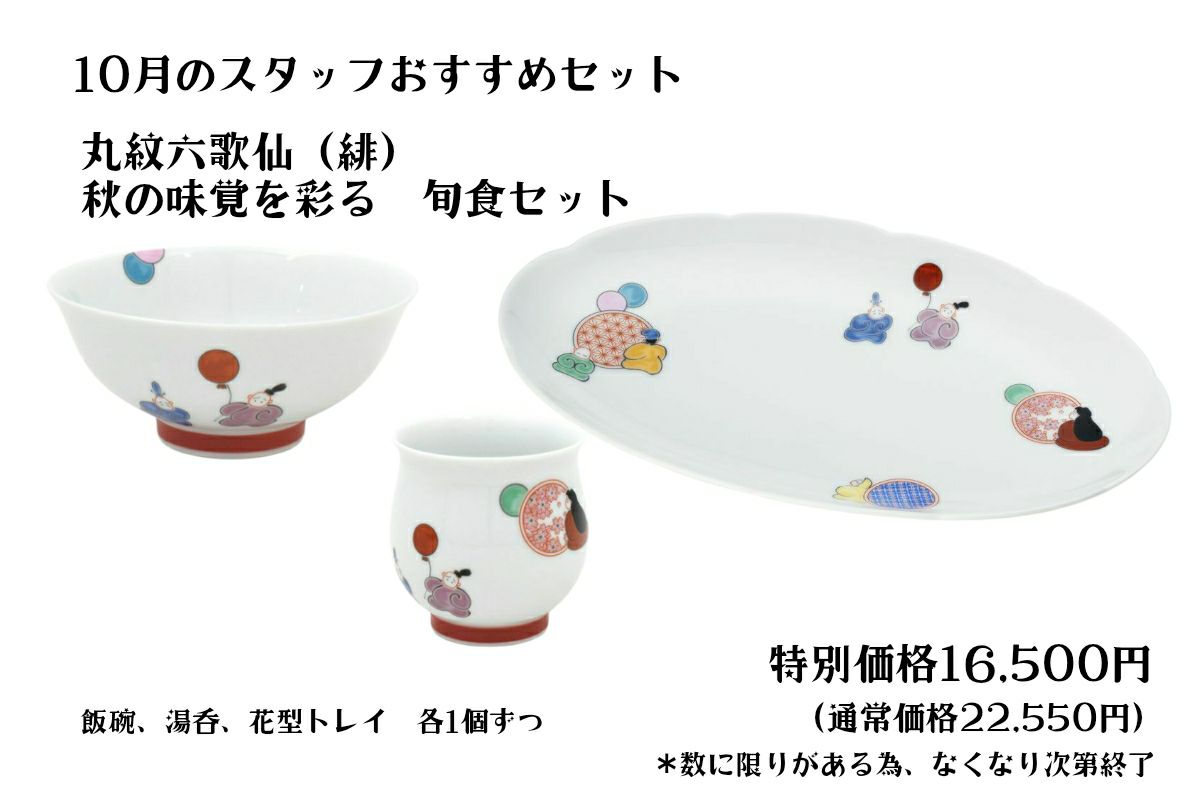 他の画像を見る ECサイト限定販売 スタッフおすすめ 数量限定 丸紋六歌仙(呉須)秋の味覚を彩る旬食セット ¥ 22,550 のところ ¥ 16,500 税込 (0) 詳細を見る ウィッシュリストに追加