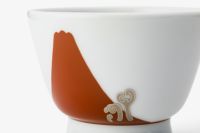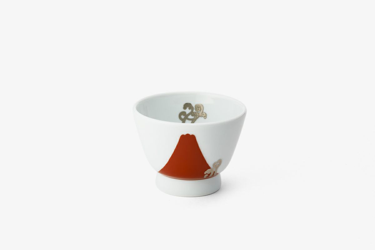 美しい朱赤色で描いた富士山のふもとに、白金で描いた蕨を施しています。同じかたちで瑠璃富士があるので、御結婚などの御祝にペアでご使用されてもおすすめです。