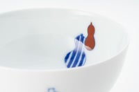 瓢箪の絵柄ひとつひとつに職人の細やかな筆つがいが施されています。持った時の手馴染みが心地よく、食する度に心が和みます。