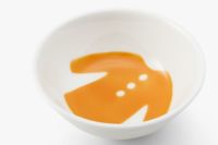 つるんとした手触りに柔らかな橙色のお洋服がデザインされています。ご飯茶碗の内側に可愛いお洋服のデザインがあるため、食べ終わった後に絵柄をお楽しみいただけます。組み合わも自由自在。お食い初めやお誕生日のお祝いにもおすすめです。