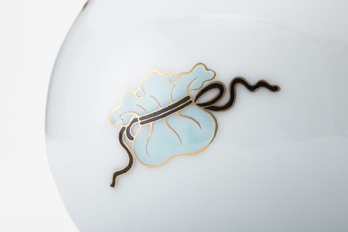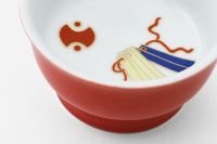宝づくしの絵柄が描かれており、宝物を集めた宝づくしの文様は代表的な吉祥文様のひとつで、福徳を招くとされています。