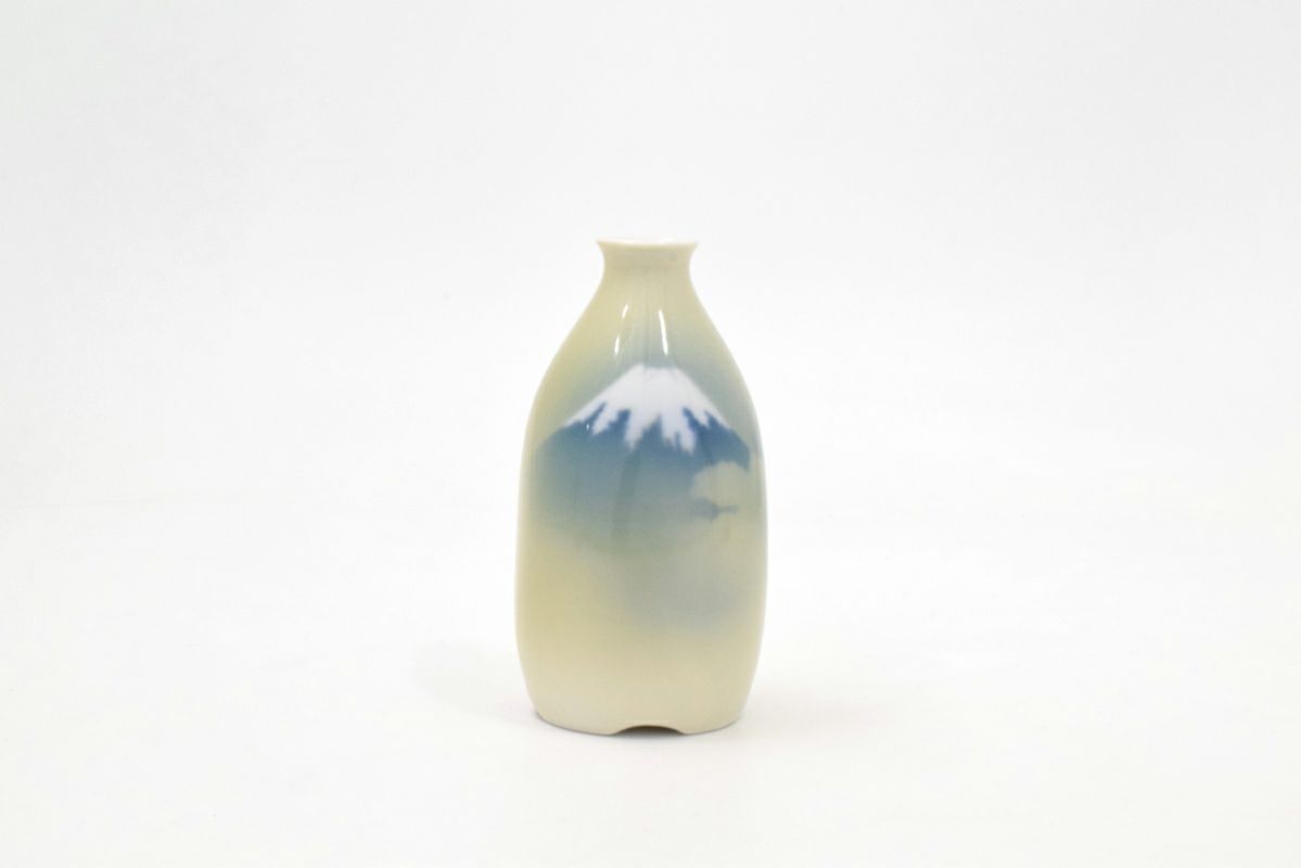 代表的な富士の意匠を登り窯で焚かれた作品。柔らかなエアログラフと優しい青磁の表情をお楽しみいただけます。