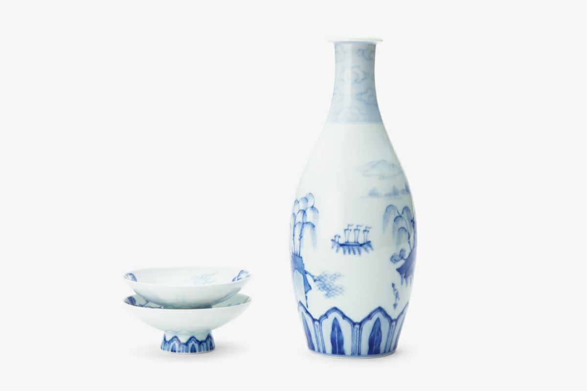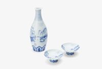 現品のみ 染付山水 二人具酒器揃(大閤園)