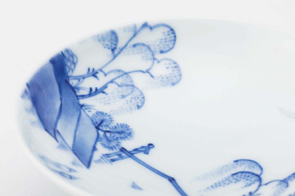 山水は、中国の理想郷であり、中国の書画における山水は、遠くのもの程大きく描く特色がある。深川の山水は、独自の有田山水と呼ばれそのタッチにやすらぎが感じられ、明治以来多くの山水画の名人を輩出しています。