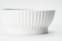 生地の表面を削る手法をしのぎ技法といいます。立体的に削りを入れることで、持ったときの軽さと優れた安定感を感じていただけます。かつて深川製磁では、世界の海を渡った船舶用のディナーセットを製造していました。そこで大切だったのは、美しいことはもちろん、揺れで落ちても割れにくく、持ち運びやすく、洗いやすいこと。丈夫で長持ちする食器作りのノウハウが、ひとつひとつのうつわに受け継がれております。