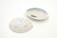 あわびの形をかたどって作られた皿に小さな蟹を描くことによって遊び心を感じる作品です。