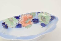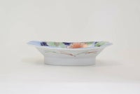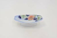 カメリアを大胆に描ており、高台の部分には職人の丁寧な技が施されている商品です。持ち上げる際、手や指が引っかかるため、滑らずに持てることも特徴です。ティータイムの菓子皿などにいかがでしょうか。