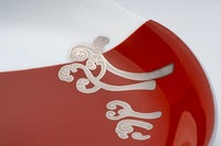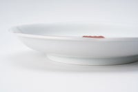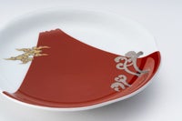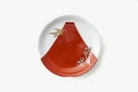 美しい朱赤色で描いた富士山のふもとに、白金で描いた蕨を施しています。お正月など、ハレの日にも使い勝手のいいサイズのお皿です。