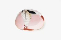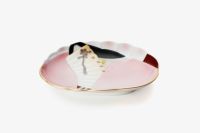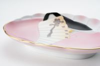 美しい十二単の装束に身を包んでいる平安時代の姫。吉祥紋様が描かれた扇で顔を隠す姿は日本人の奥ゆかしい佇まいを感じさせます。高台があるので、お気に入りの和菓子など取り皿としてお使いいただけます。雛祭りの季節にもおすすめ♪