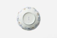 菊割の輪花鉢は、柿右衛門様式として広く知られています。19世紀末新しい有田の意匠として1900年パリ万国博覧会に出展した深川忠次は、彼のオリジナルデザインをパッチワークのようにこの輪花鉢の花弁に施しました。