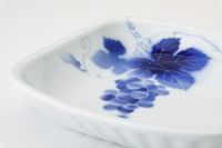 ブルーワイナリーは発売以来、多くの方に愛されてきた深川製磁の代表的なベーシックライン。豊かな実りを表すぶどうを100年の伝統を持つ染付技法で表現しています。「身近な工芸」、「用の美」を目指したブルー&ホワイト。普段の料理はもちろん、おもてなしの料理でも品よく、そしてやさしさを感じるうつわ。ユニークで温かみのある形状と余白に美を感じる染付のぶどう柄は、毎日の食卓をやさしく彩ります。
