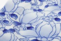 初代 深川忠次が、明治期より好んで用いたモチーフの花鳥絵であります。染付の繊細なタッチで木蓮と小鳥を美しく描いています。
