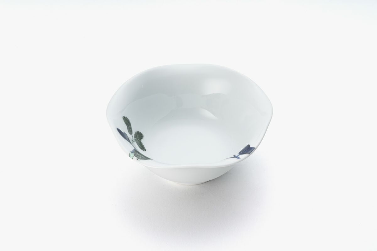 2024 年有田陶器市企画品として数量限定で制作しました。 「物事のはじめ」を表わす双葉を描いた、ツインコレクション。深みがある取皿なので、ヨーグルトやカットフルーツ、おつまみ皿にも、おしゃれに演出してくれます。 独自に調合したオリーブグリーンとインクブルーの絵具が織りなす双葉がとてもキュートです。