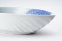 染付で波に千鳥の意匠を施したお刺身です。あわびの形をかたどって作られた器は色々な形を楽しめる和食器ならではの商品です。 いつもと違う形はお料理をより美味しく引き立ててくれます。