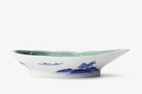 古来中国の皇帝が「玉」のように白磁を愛したように、青磁は「翡翠」のような魅力をもっています。 純白の素地にかかる透明感のある青磁釉薬は、陰影の美しさ、気韻を呈しております。