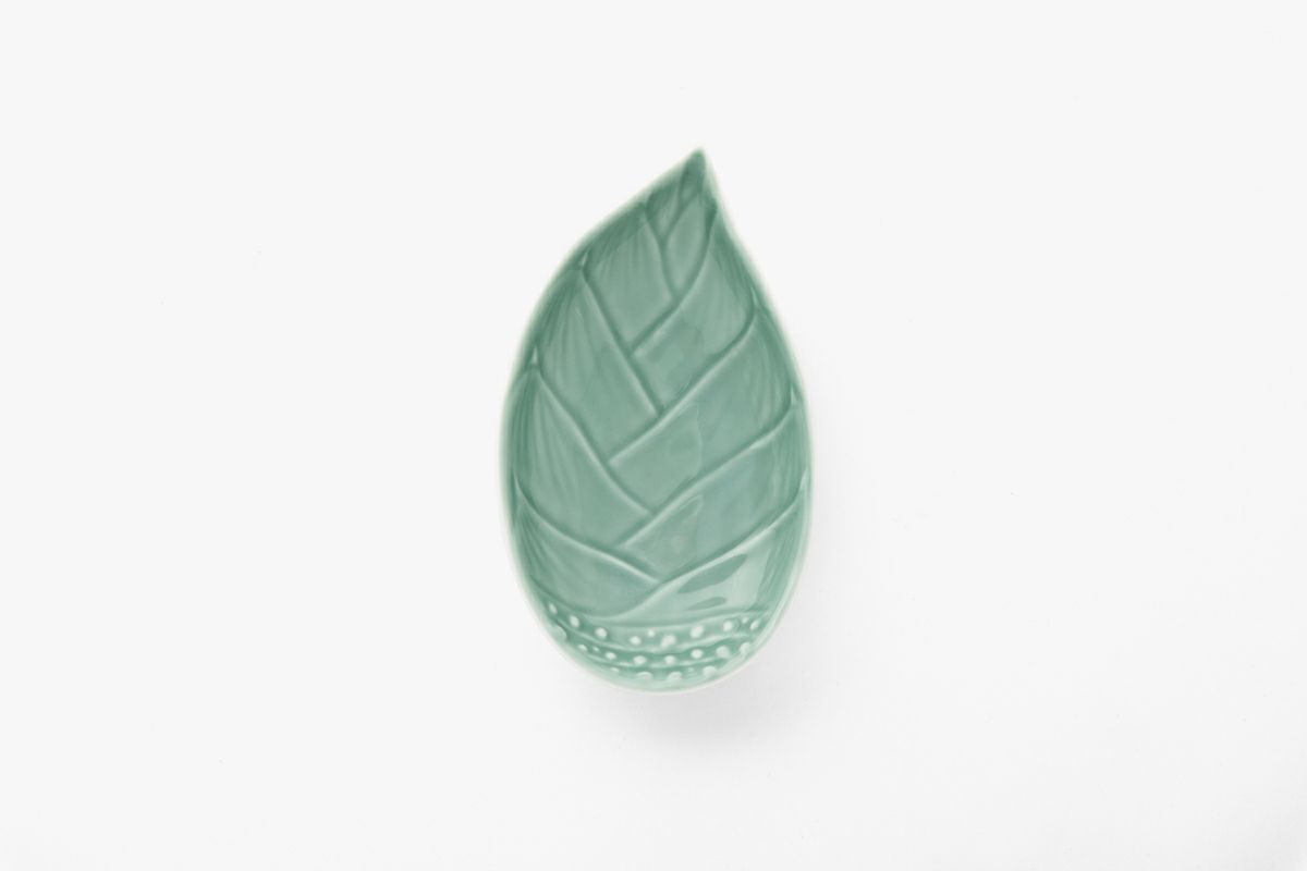笹青磁 竹の子彫刻皿