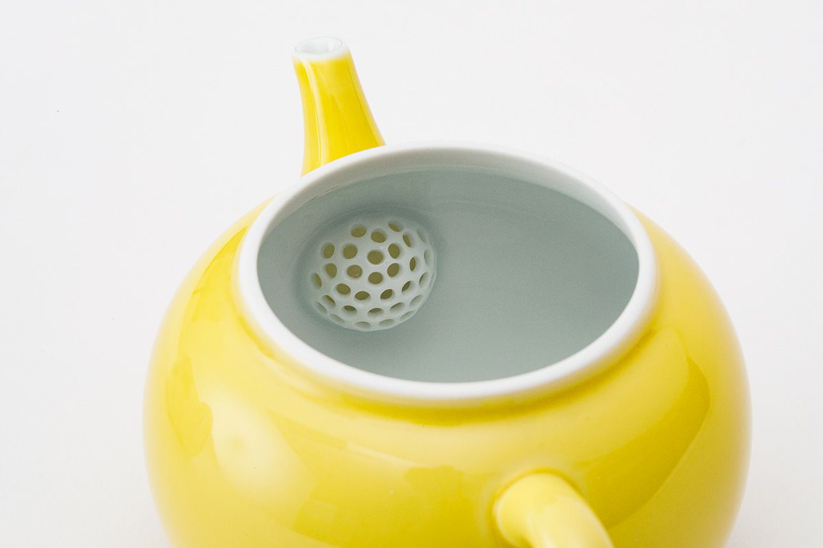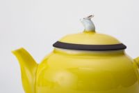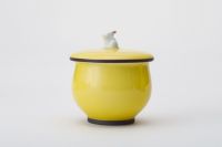 黄色にうさぎのつまみがかわいらしい蓋付きの煎茶碗と急須付きの工芸作品です。玉露や中国茶にもおすすめなサイズです。
