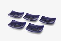 「深川ブルー」と呼ばれる深い瑠璃色は様々な色のうつわとも相性が良く、白磁(ホワイト)の茶托同様、舟の形をしたデザインは手に取りやすく、おもてなしにも大活躍する5枚セットです。