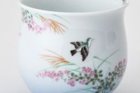 やわらかな白磁の肌に、秋の風情を感じさせる萩の花をあしらった湯呑。淡い色調と余白の美しさが調和し、凛とした中にもやさしさを感じる仕上がりです。 日々の食卓にそっと季節感を添える、深川製磁ならではの繊細な絵付けと上品な佇まい。手にすっと収まるサイズ感で、ほっとするお茶の時間を演出します。