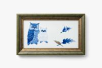 愛らしい、そして神秘的なフクロウの表情は自分で育てたフクロウを観察し、愛情を持って描いております。
