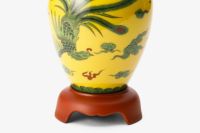 竜鳳凰錦手黄地冠付台付6寸飾壺(壷)