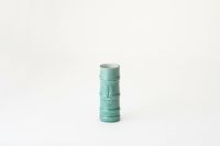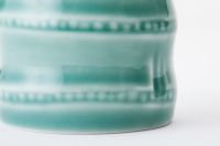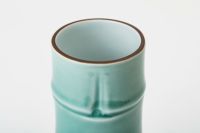 スマートでシンプルな青磁の花生には、熟練の職人が丁寧に彫刻を施しており、「竹青磁」と呼ぶこの青磁は、天然の「栗皮灰」を混入して自家精製したもので、細かい気泡が内部に見え、深く透明なヒスイ色が魅力です。 場所を選ばす美しく活けられ、存在感を放ちます。