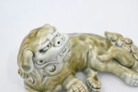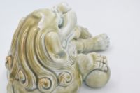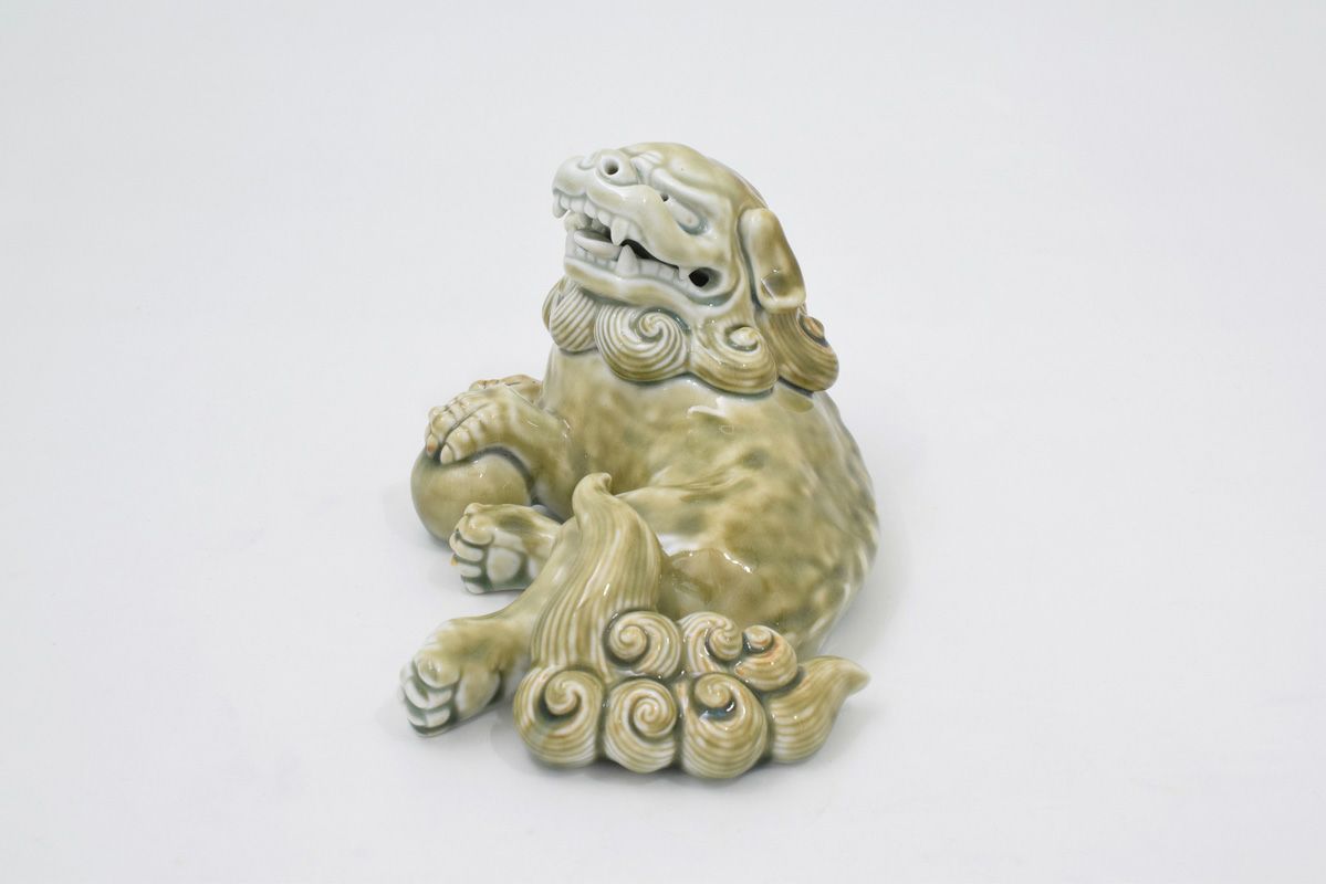 23谷窯泉山青磁 珠獅子置物(貫入あり)