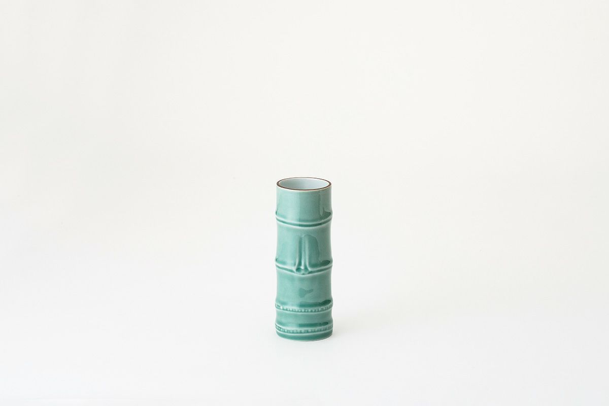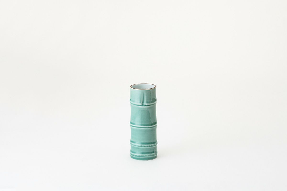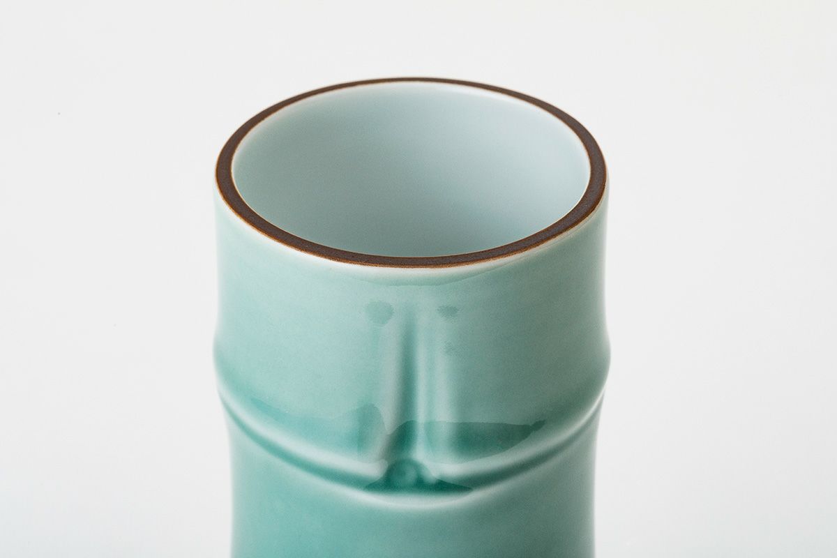 笹青磁竹彫刻 小花生