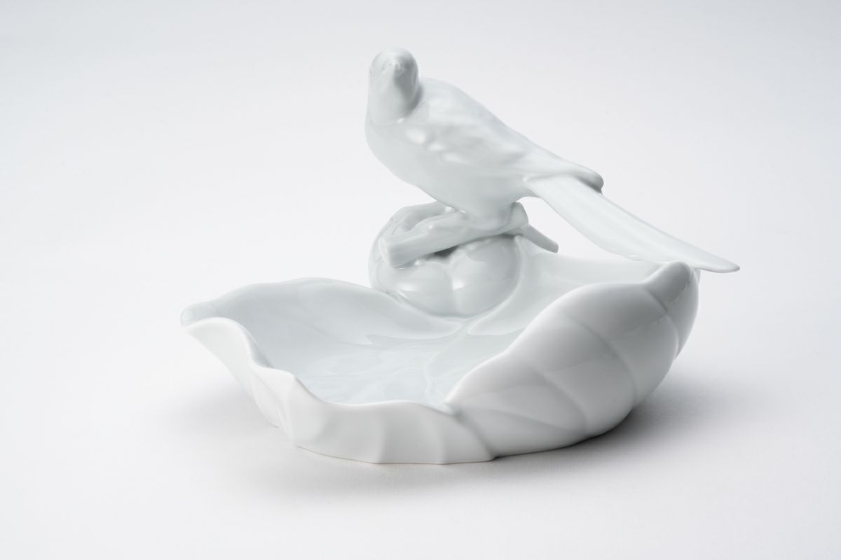 釉彩小鳥 彫刻皿
