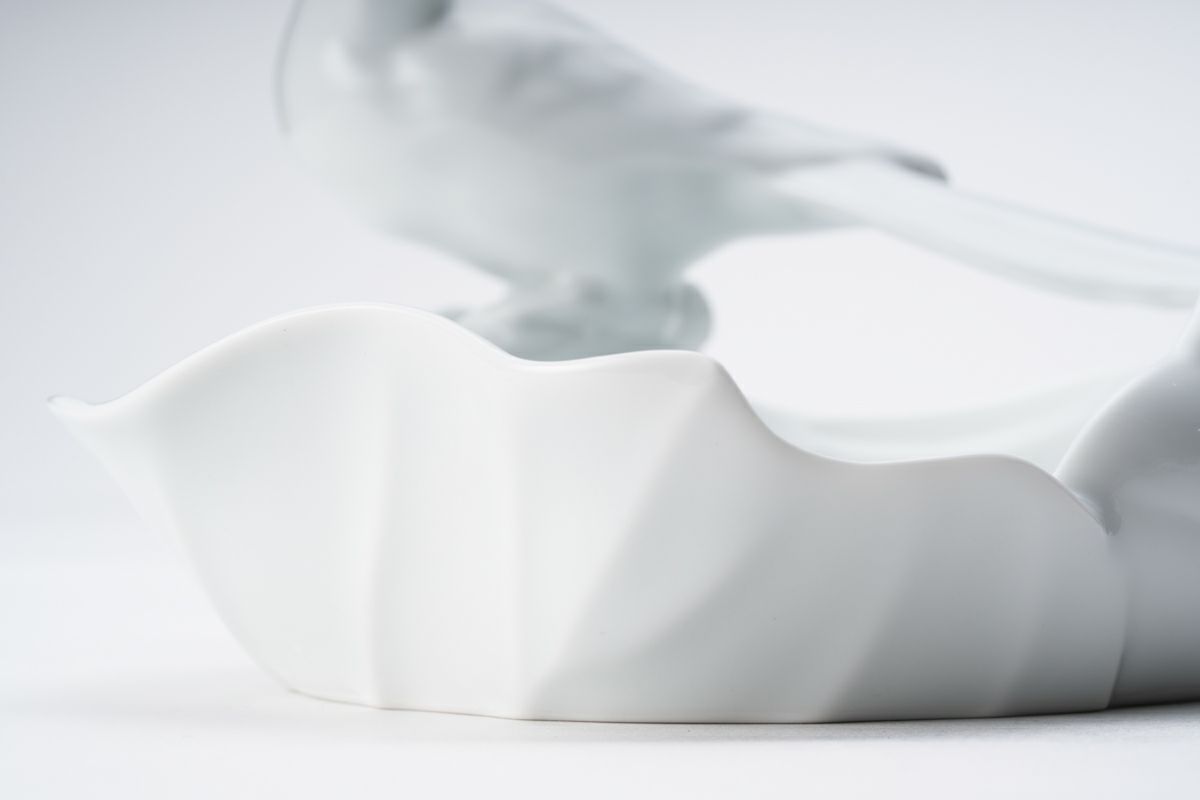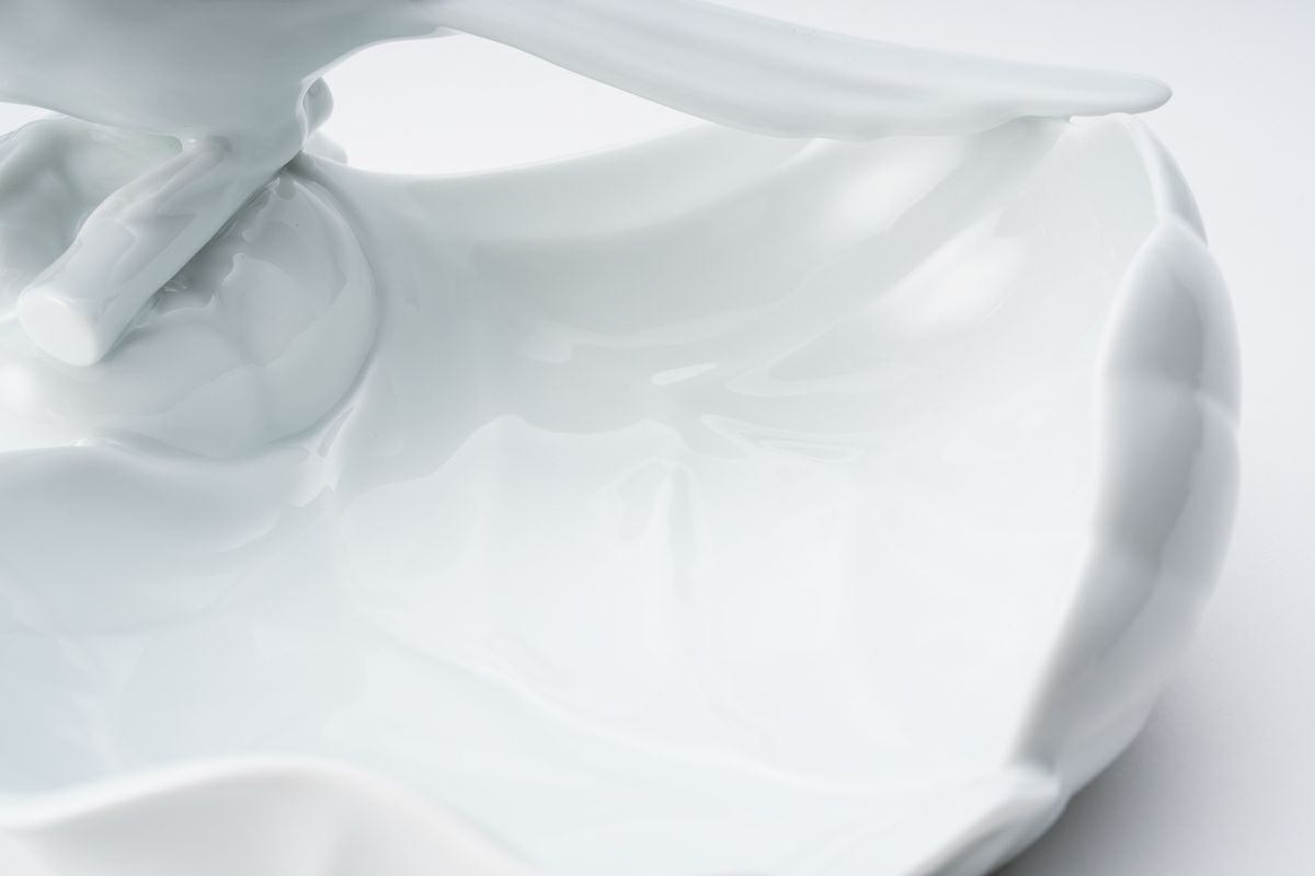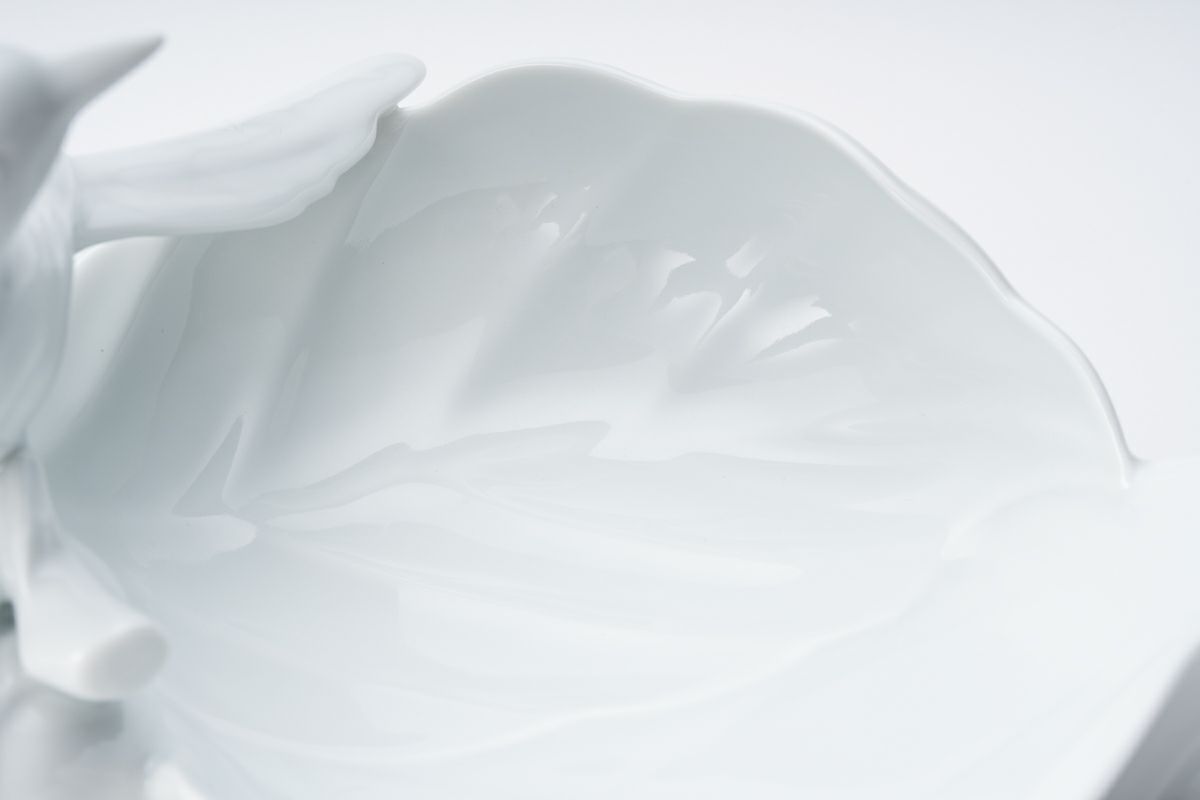 白磁勝烏  彫刻皿