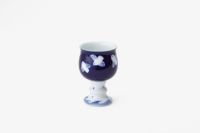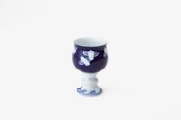 深い瑠璃色に雀の意匠がかわいい工芸的なワインカップ。