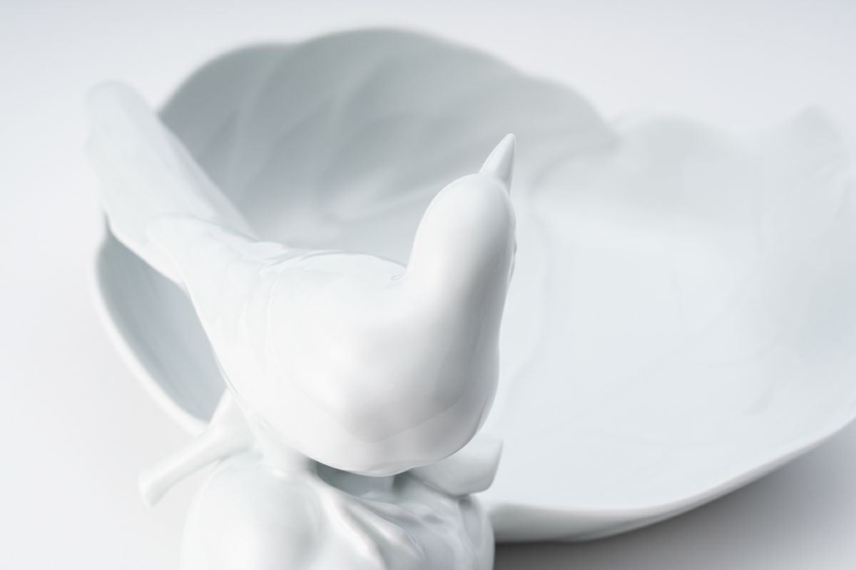 白磁勝烏  彫刻皿