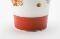 朱赤と金彩で艶やかに描いた桜は白磁と朱赤の器で舞うように咲き乱れます。 花言葉は「純潔」「高貴」