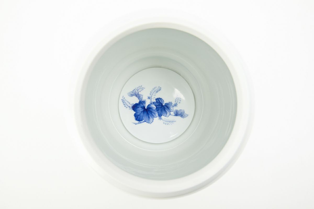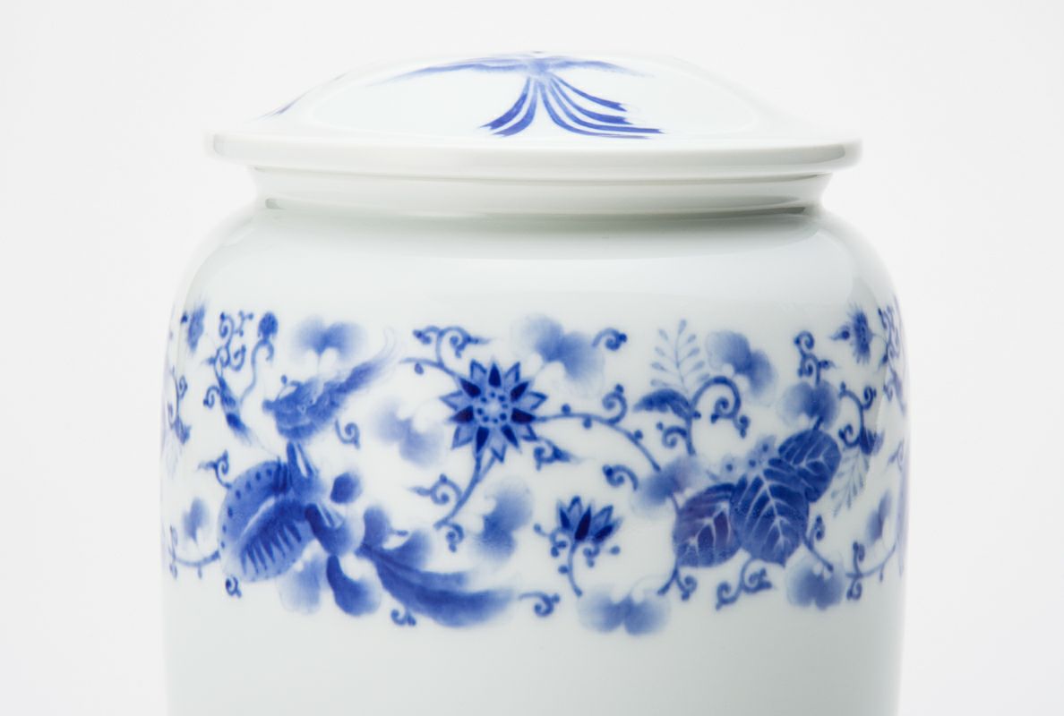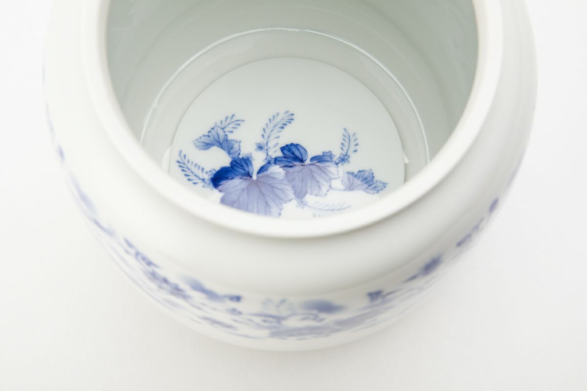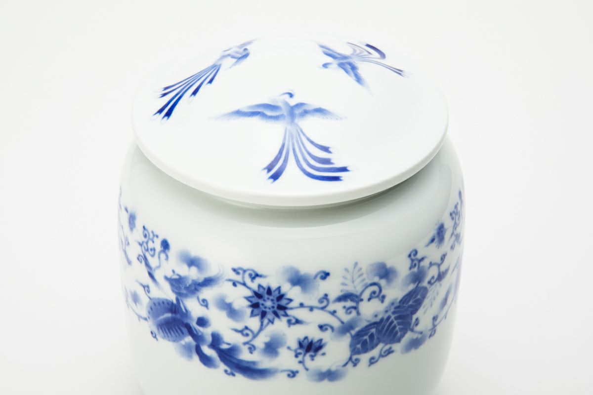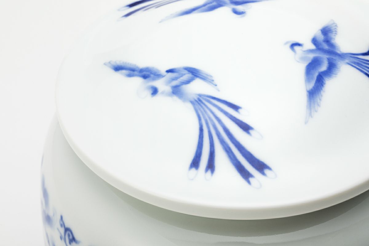 明治期より宮内省御用達を拝命する深川製磁、その卓越した製陶技術は『日本の官窯』といわれています。明治期の禁裏文様を伝統工芸士 山口暁雲が描き、1350度の高温度還元焼成により気品ある官窯染付となっています。