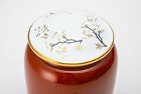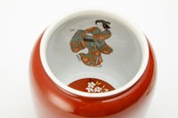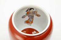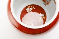 古来より、朱色は高貴な色として「邪気を祓う」と云われています。 全体及び水抜き盤を深川独自の艶やかな朱色で彩色し、蓋には日本人の心の花さくらを、中には花見踊りを配しております。