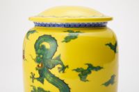 明代、清代の皇帝が「官窯」で造らせた陶磁器、中でも黄色に動物モチーフ「竜鳳凰」の意匠は最高の吉祥文として皇帝だけが使用できたものです。深川製磁の初代深川忠次も世界最高の陶磁器造りを目指し、この意匠を明治期より描いております。