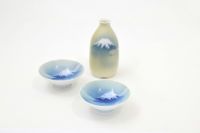 代表的な富士の意匠を登り窯で焚かれた作品。柔らかなエアログラフと優しい青磁の表情をお楽しみいただけます。